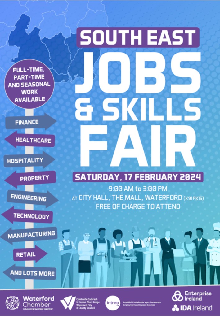 У суботу, 17 лютого, у мерії Вотерфорда з 9:00 до 15:00 відбудеться Ярмарок вакансій Південного Сходу Ірландії.