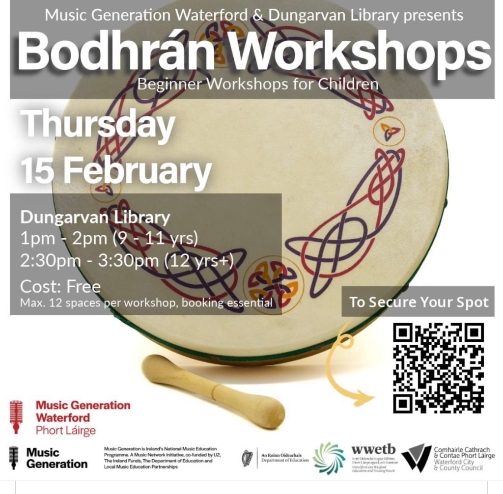 Ми раді повідомити про ще один захоплюючий семінар у партнерстві з Music Generation Waterford і Dungarvan Library у рамках лютневої серії дитячих семінарів на проміжних канікулах.
