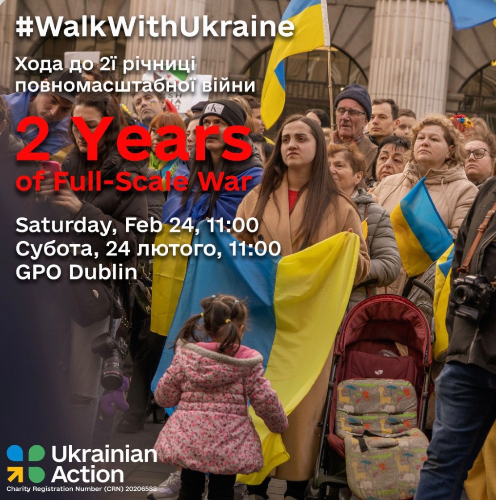 ми розпочнемо свою ходу у підтримку України та пронесемо українські стяги центральними вулицями столиці Ірландії.