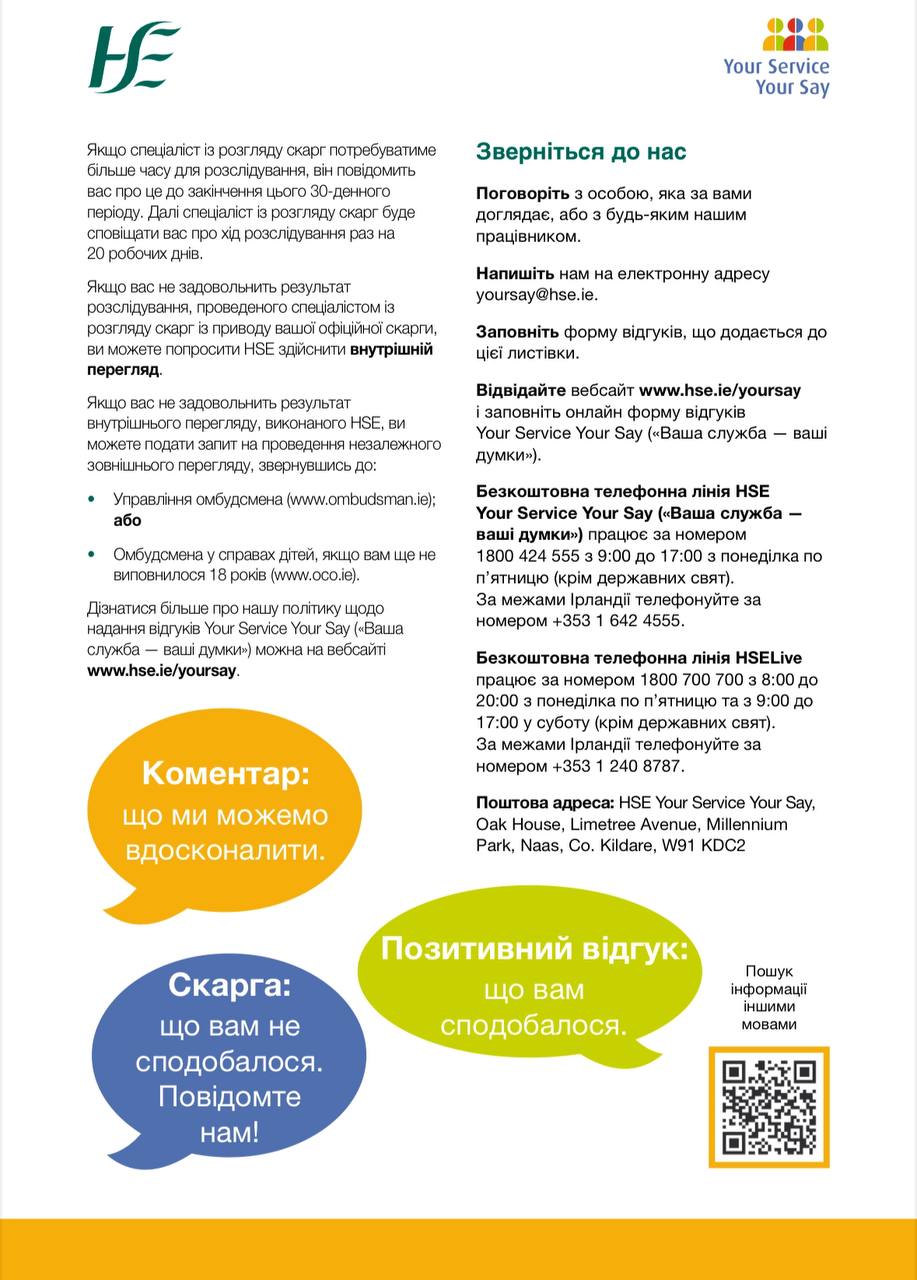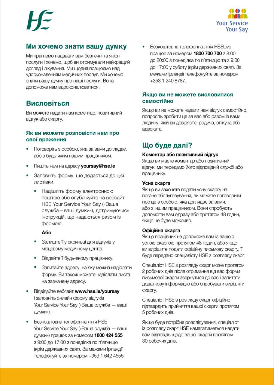 - Подати скаргу на HSE/лікаря/медичну послугу